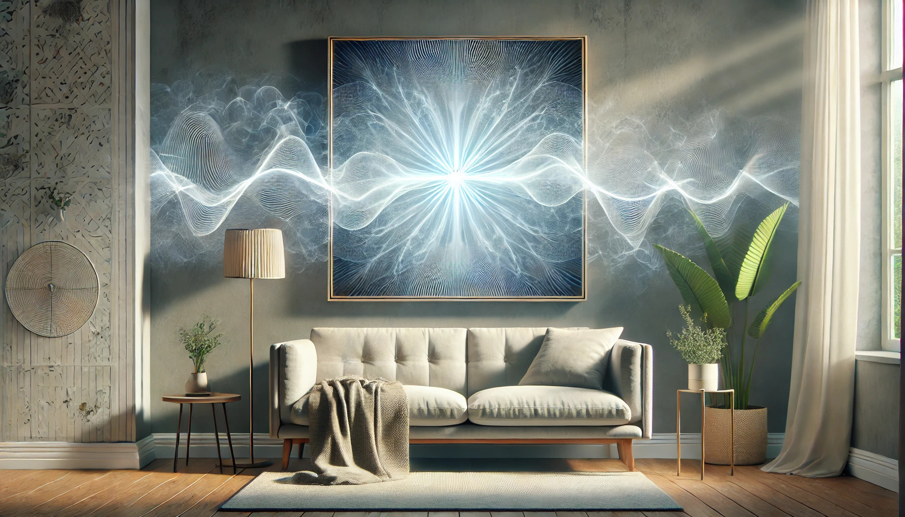 3. Diffusion des fréquences de Schumann : La toile, déjà soumise aux fréquences de Schumann, peut jouer le rôle de "surface résonante". Lorsque l'eau chargée d'ions s'évapore, elle porte avec elle cette énergie vibratoire, créant une sorte de "halo" de fréquence autour du système. Cela va amplifier l'effet des fréquences de Schumann dans l'air extérieur, propageant ces vibrations de manière subtile dans la pièce.